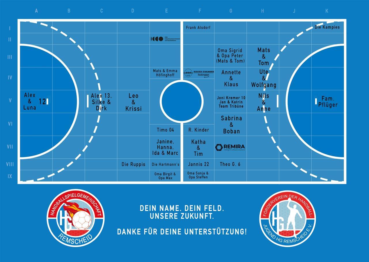 Unter dem Motto „Mach Dein Feld klar“ hat der Förderverein der Handballjugend basierend auf einer Idee von Jugendkoordinator Frank Alsdorf ein virtuelles Spielfeld ins Leben gerufen. Für 25, 50 oder 250 Euro könnt