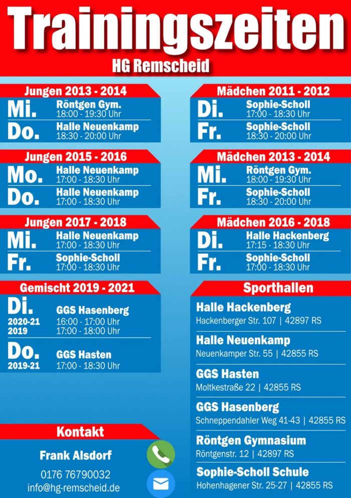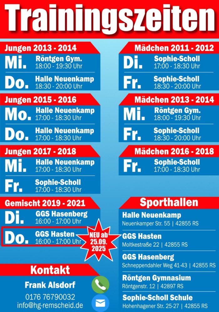 HGR Trainingszeiten Jugend – Saison 2025/ 2026