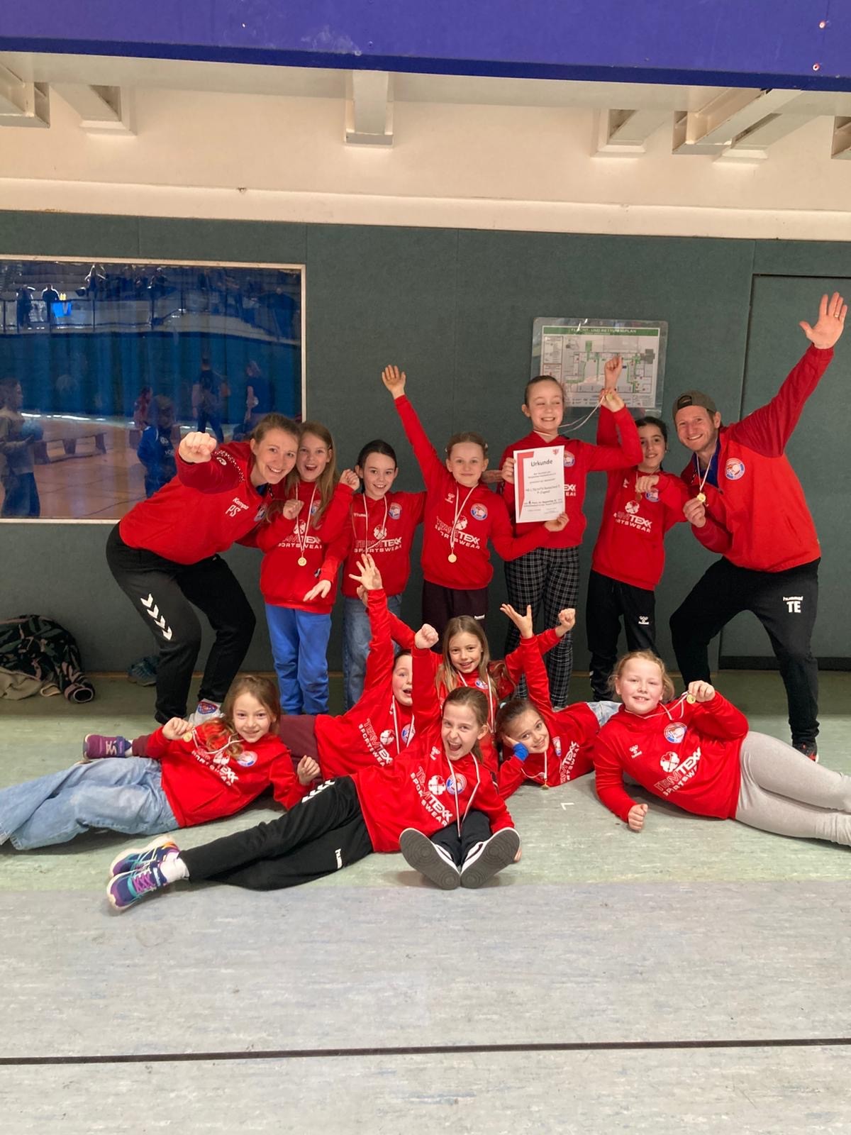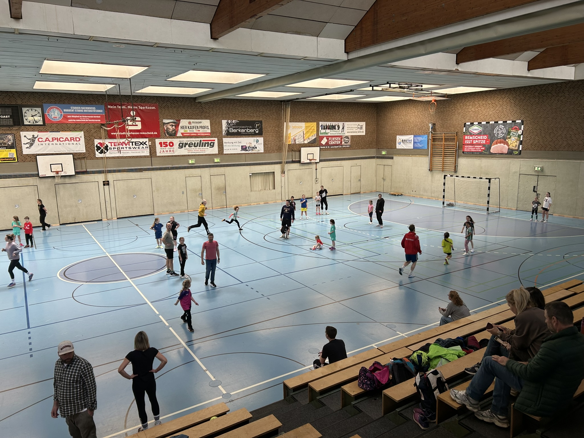 Am vergangenen Wochenende stand für die F3 der letzte Einsatz an – diesmal in der Klingenhalle. Gegen die HSG Rade/Herbeck II trennten sich die Mädchen 1:1 – ein etwas ärgerliches Ergebnis, da viele Chancen ungenutzt blieben und der Ausgleich quasi mit der letzten Aktion fiel. Im zweiten Spiel gegen DJK Unitas Haan II zeigten sie dann noch einmal ihr Können und gewannen verdient mit 8:1. Besonders das Zusammenspiel und die starke Abwehrarbeit waren hier ausschlaggebend.