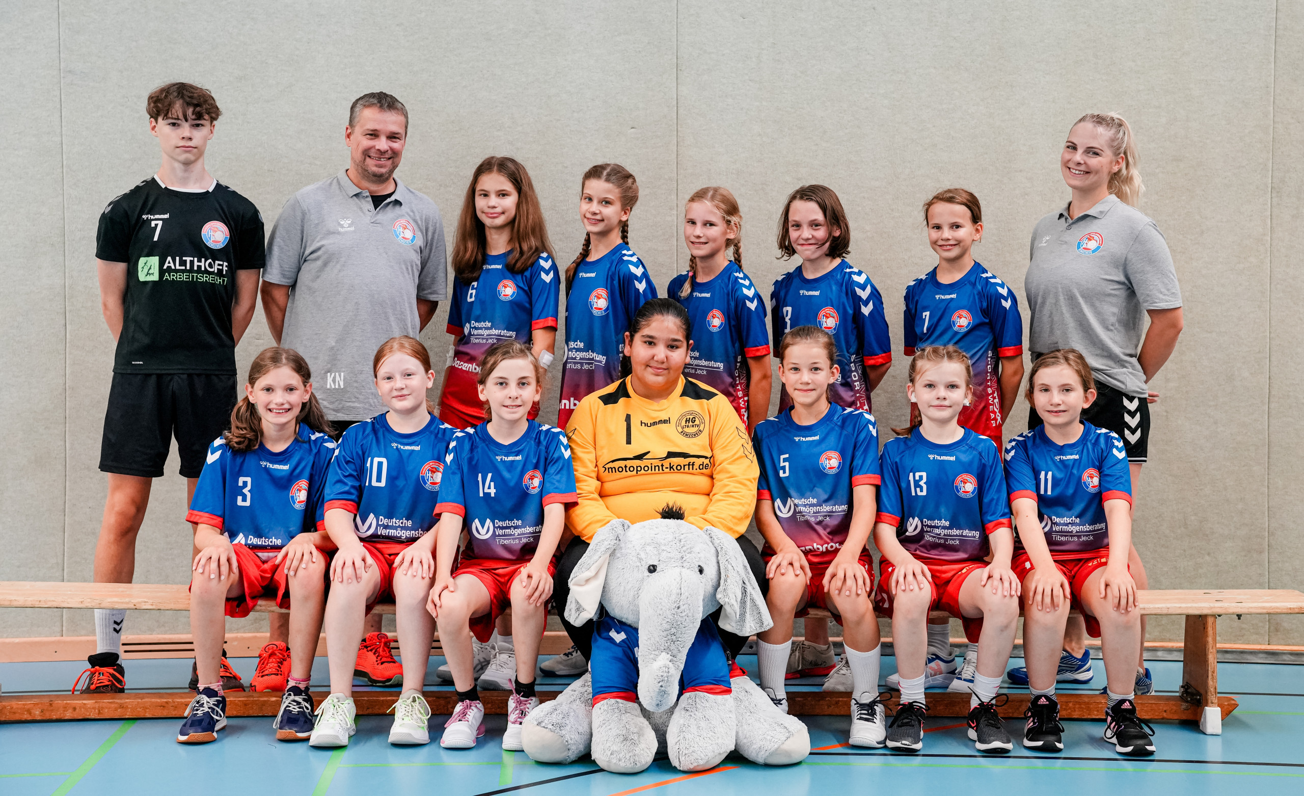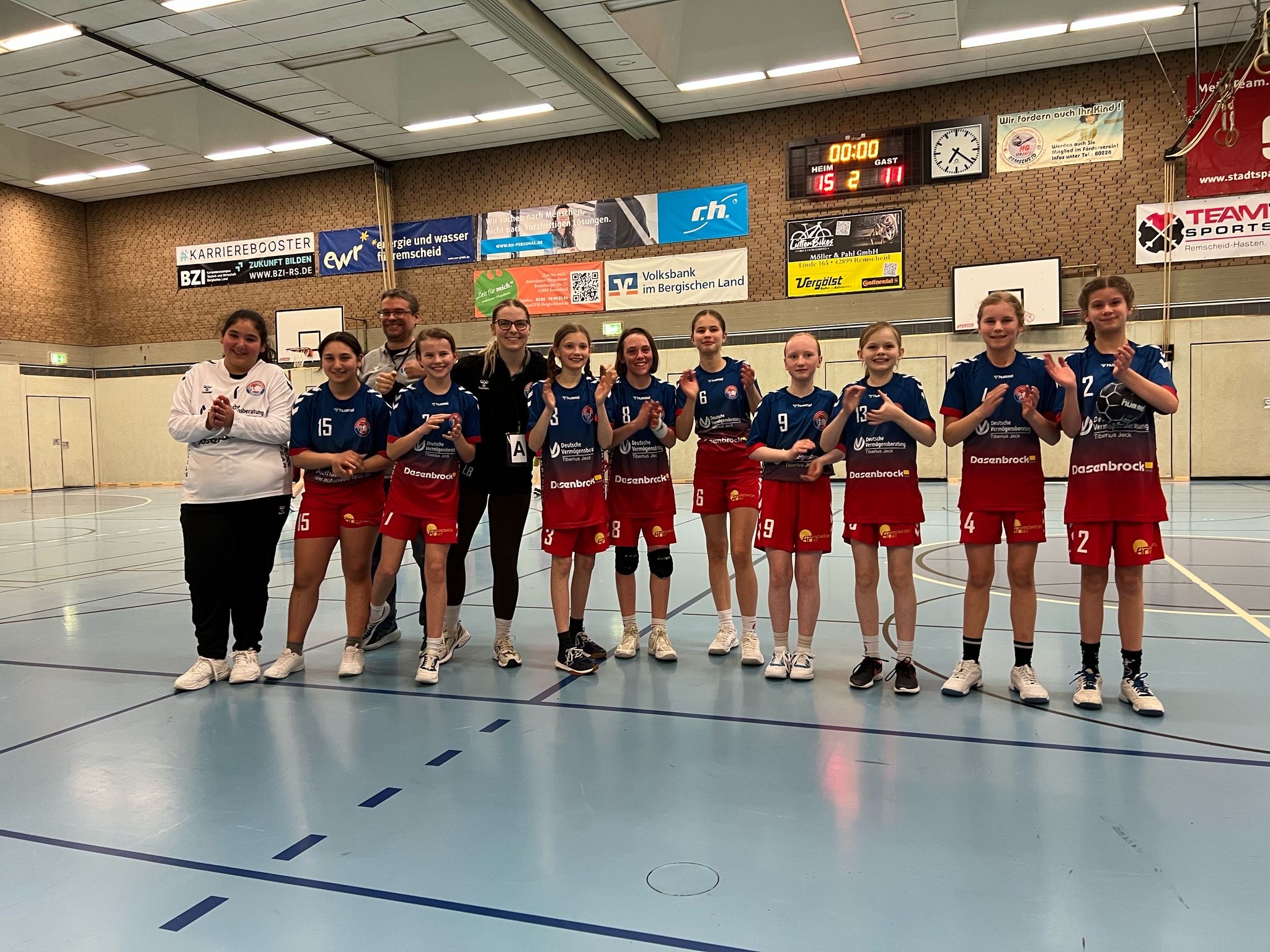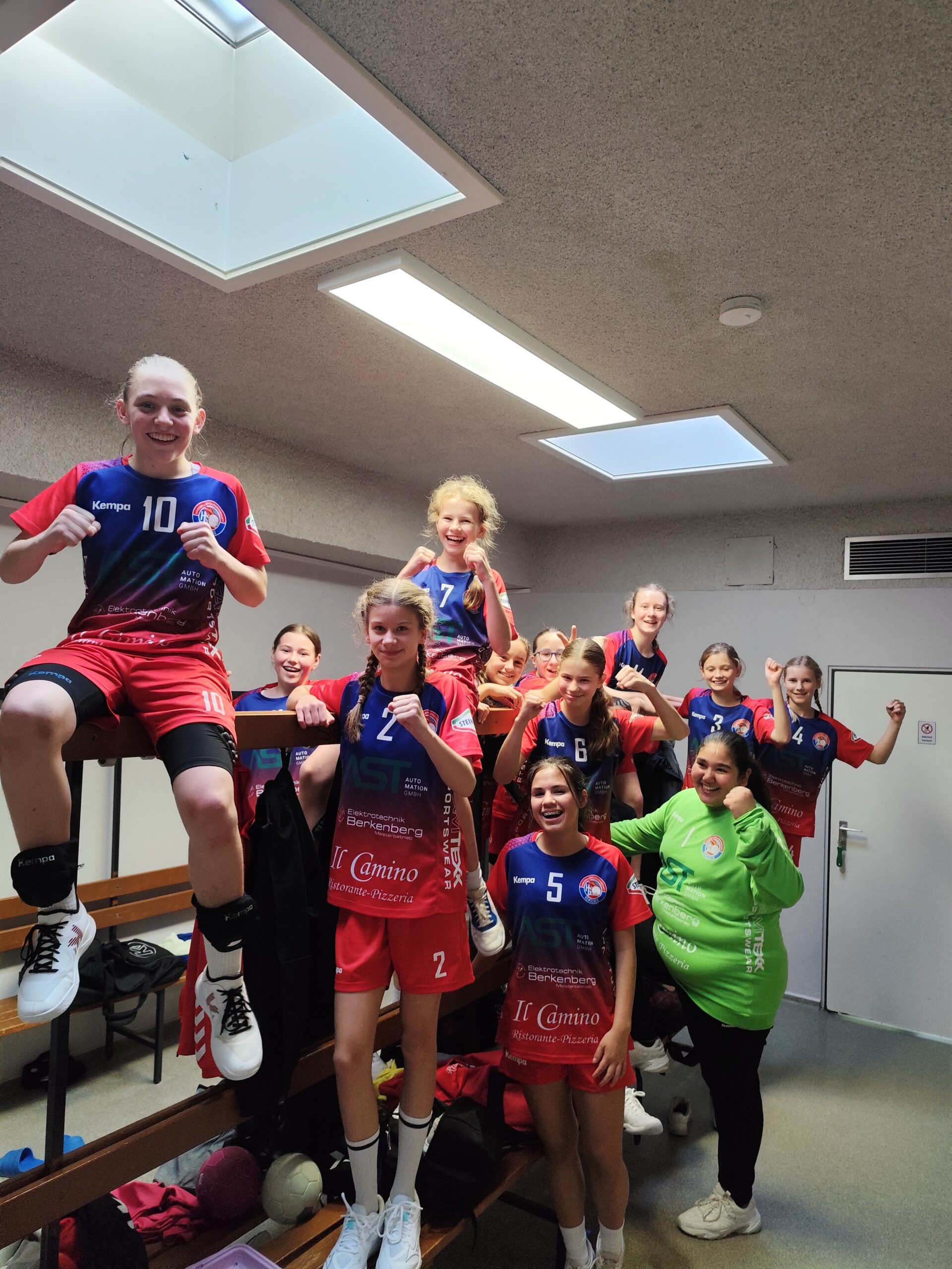Es spielten und trafen: Nisa (TW, 3 gehaltene 7m), Leni (9/1), Ronja (6), Naila (1) Emilia (2), Leona (1/1), Hanna, Jojo (5), Johanna, Romy und Paula.